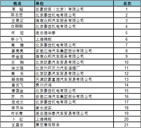 当日下午,期盼已久的2020中国商用车服务知识大赛正式拉开帷幕,根据本届大赛的安排,决赛阶段分为个人决赛和团体决赛,经过激烈角逐,最终综合计分,云豪集团的代表从全国4000位参赛选手突出重围蝉联冠、亚军,以下榜单中有11名都是云豪集团旗下的员工。